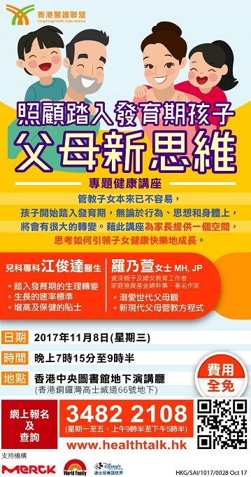 香港醫護聯盟 - 「照顧踏入發育期孩子 : 父母新思維 」 專題健康講座
