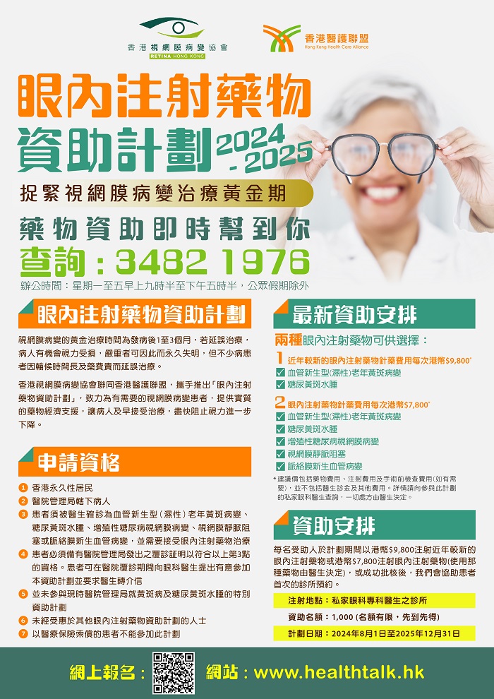 本人巳閱讀過關於眼內注射藥物資助計劃的詳情。所提出的所有問題均被解答,並願意參與該優惠計劃。